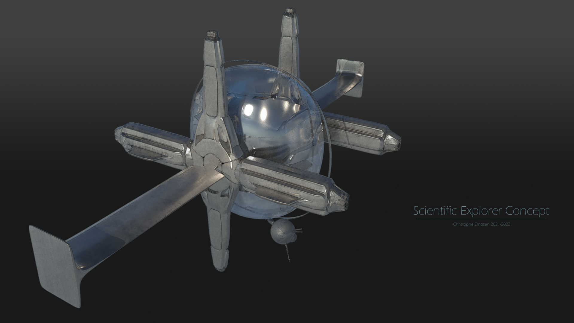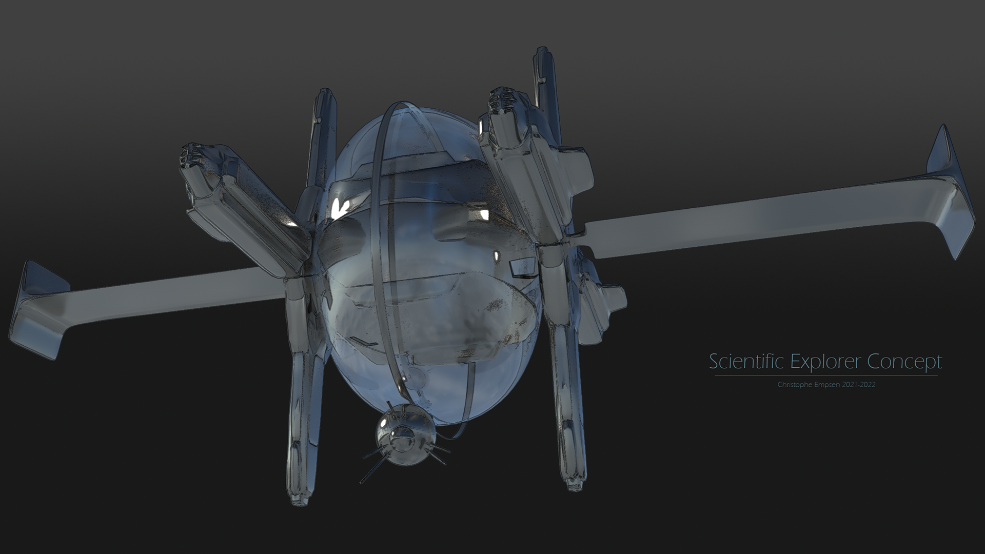 A peaceful scientific explorer craft, created in ZBrush, rendered in KeyShot for ZBrush.